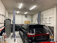 2柱リフトを導入しました。車体下の細部の確認や、足回りの点検もスムーズに作業する事が可能となりました